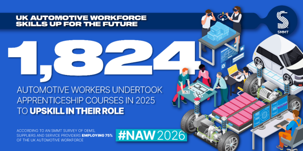 Monday 9 February, 2026 Britain’s automotive industry is in the midst of a major skills drive with the number of apprentices in the sector rising by 33% and new starters up 28% in 2025, according to a new survey of major employers by the Society of Motor Manufacturers and Traders (SMMT).1 There were 1,699 apprenticeship starts in the last academic year, while a further 1,824 apprenticeship courses were provided to upskill existing workers in their current role.