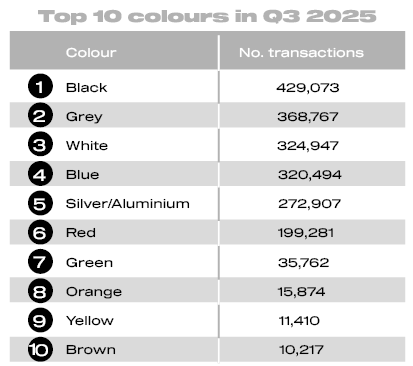Black and grey remained the best-selling used car colours, up 3.1% and 6.3%, with white (also up 6.3%) overtaking blue to reach the top three. Cream recorded the strongest growth of 10.1%, although volumes were small at 1,379 transactions. This was followed by green which recorded 9.0% growth and 35,762 transactions. Despite a 3.2% uplift, maroon cars were the least popular with just 1,250 changing hands. Pink cars, meanwhile, recorded the steepest decline, of -7.0% to 1,314 units.