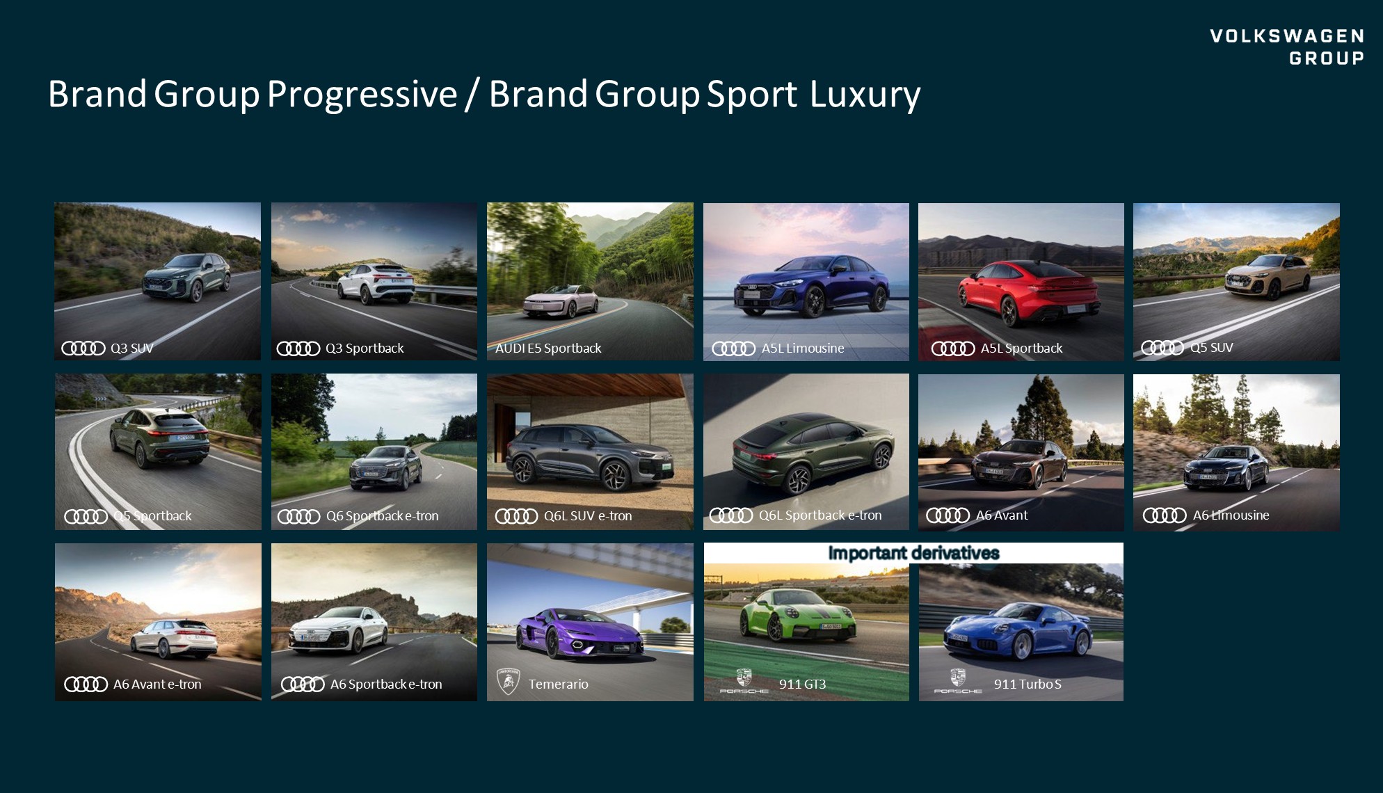Significant growth in Europe (+4 per cent) and South America (+12 per cent) contrasts with expected declines due to challenging market conditions in North America (-10 per cent) and China (-8 per cent). Spotlight Europe: Market share expanded to a new high of around 25 per cent1 despite new competitors; VW T-Roc and VW Tiguan each ranked first in the two most important growth segments Spotlight South America: Deliveries increased to highest level since 2014 despite strong competitive pressure; successful new models such as the VW Tera, which attracted more than 56,000 customers in its first year, make an important contribution Spotlight China: Audi regains top spot in the premium segment after six years, Volkswagen (including Jetta) expands combustion engine market leadership |